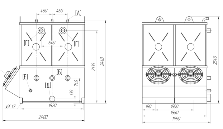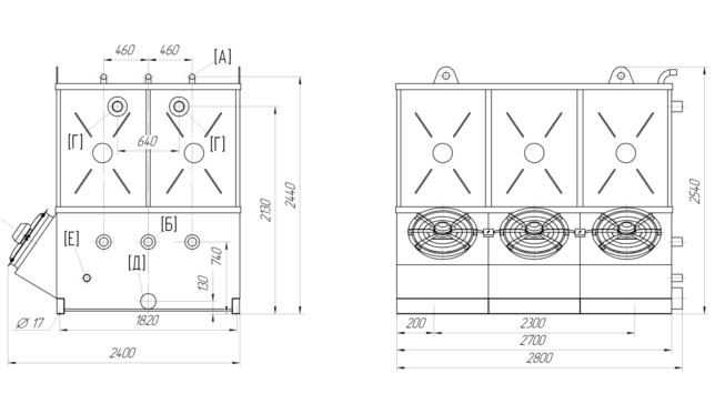 * Использованы эффективные, с большой подачей и напором, надёжные вентиляторы со штампованным диффузором, жёсткой конструкцией крепления и приемлемыми уровнями шума и вибрации.
